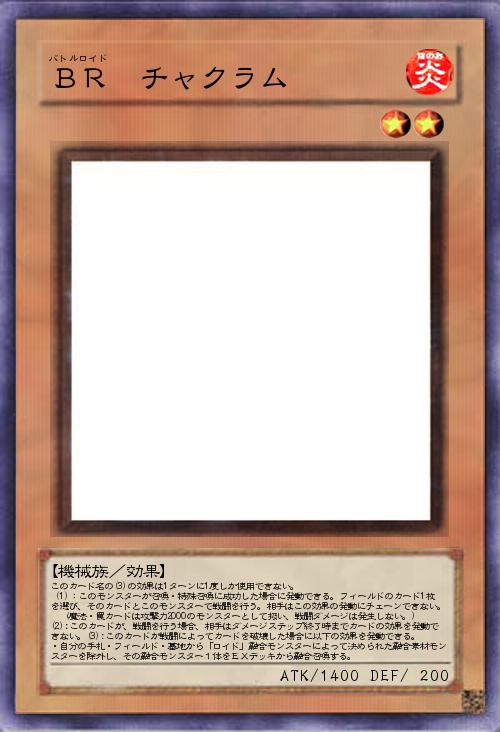 このカードは固有効果として「ロイド」モンスター専用のサクリファイス・フュージョンを内蔵しています。既存の「ロイド」融合モンスターだと極戦機王ヴァルバロイドが相性が良いカードだと思います。この先「BR」融合モンスターも投稿するつもりです。」(2018-08-29 19:46)