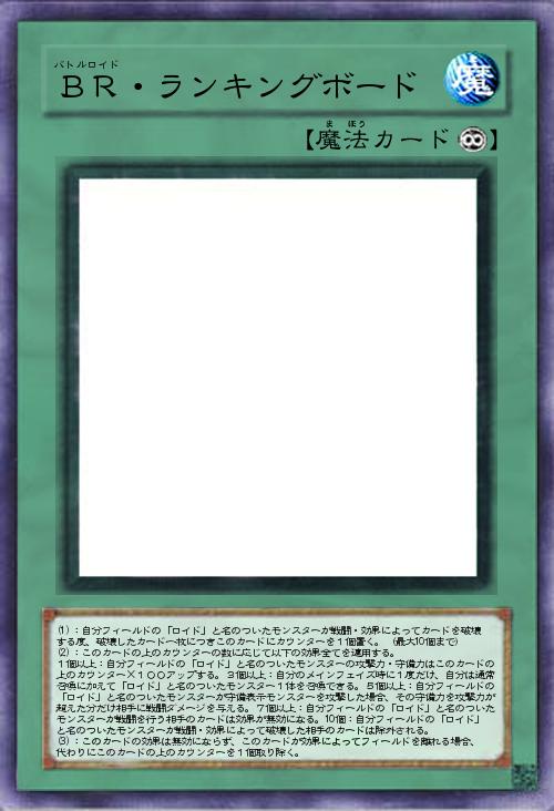 | (1):自分フィールドの「ロイド」と名のついたモンスターが戦闘・効果によってカードを破壊する度、破壊したカード一枚につきこのカードにカウンターを1個置く。(最大10個まで) (2):このカードの上のカウンターの数に応じて以下の効果全てを適用する。 1個以上:自分フィールドの「ロイド」と名のついたモンスターの攻撃力・守備力はこのカードの上のカウンター×100アップする。3個以上:自分のメインフェイズ時に1度だけ、自分は通常召喚に加えて「ロイド」と名のついたモンスター1体を召喚できる。5個以上:自分フィールドの「ロイド」と名のついたモンスターが守備表示モンスターを攻撃した場合、その守備力を攻撃力が超えた分だけ相手に戦闘ダメージを与える。7個以上:自分フィールドの「ロイド」と名のついたモンスターが戦闘を行う相手のカードは効果が無効になる。10個:自分フィールドの「ロイド」と名のついたモンスターが | |||