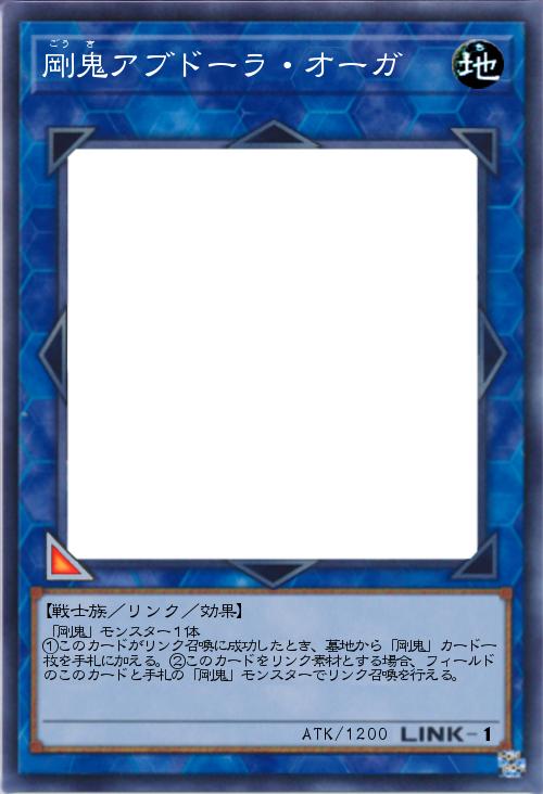 | 「剛鬼」モンスター1体 ①このカードがリンク召喚に成功したとき、墓地から「剛鬼」カード一枚を手札に加える。②このカードをリンク素材とする場合、フィールドのこのカードと手札の「剛鬼」モンスターでリンク召喚を行える。 | |||