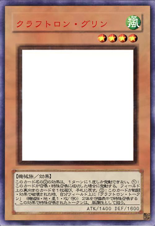 | このカード名の②の効果は、1ターンに1度しか発動できない。①:このカードが召喚・特殊召喚に成功した場合に発動する。フィールド上の裏向きのカードを1枚選び、手札に戻す。②:このカードが戦闘・効果で破壊された時、自分フィールド上に「クラフトロン・トークン」(機械族・地・星1・攻/守0)2体を守備表示で特殊召喚する。この効果で特殊召喚されたトークンは、風属性として扱う。 | |||