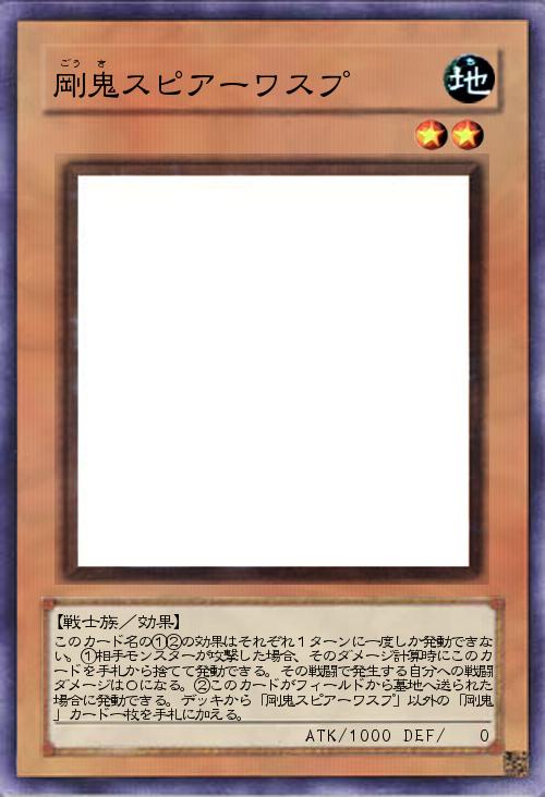 | このカード名の①②の効果はそれぞれ1ターンに一度しか発動できない。①相手モンスターが攻撃した場合、そのダメージ計算時にこのカードを手札から捨てて発動できる。その戦闘で発生する自分への戦闘ダメージは0になる。②このカードがフィールドから墓地へ送られた場合に発動できる。デッキから「剛鬼スピアーワスプ」以外の「剛鬼」カード一枚を手札に加える。 | |||