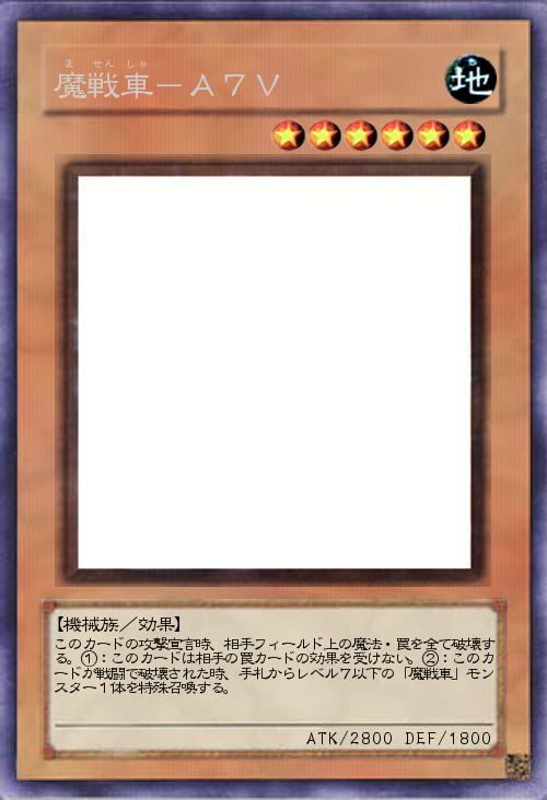 | このカードの攻撃宣言時、相手フィールド上の魔法・罠を全て破壊する。①:このカードは相手の罠カードの効果を受けない。②:このカードが戦闘で破壊された時、手札からレベル7以下の「魔戦車」モンスター1体を特殊召喚する。 | |||