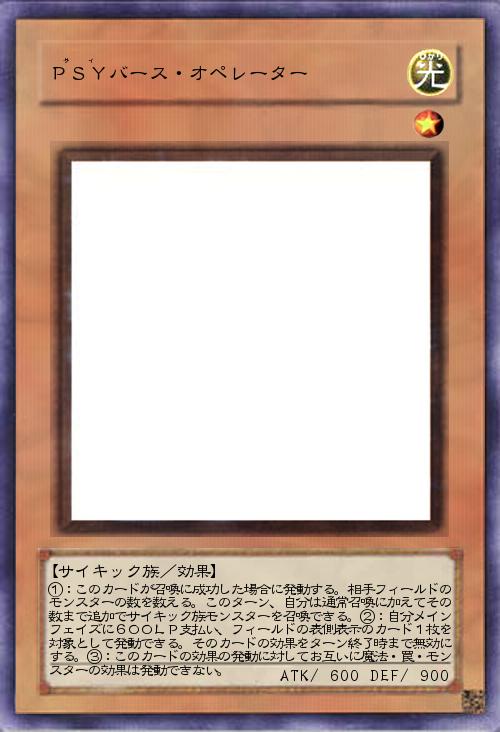 | ①:このカードが召喚に成功した場合に発動する。相手フィールドのモンスターの数を数える。このターン、自分は通常召喚に加えてその数まで追加でサイキック族モンスターを召喚できる。②:自分メインフェイズに600LP支払い、フィールドの表側表示のカード1枚を対象として発動できる。そのカードの効果をターン終了時まで無効にする。③:このカードの効果の発動に対してお互いに魔法・罠・モンスターの効果は発動できない。 | |||