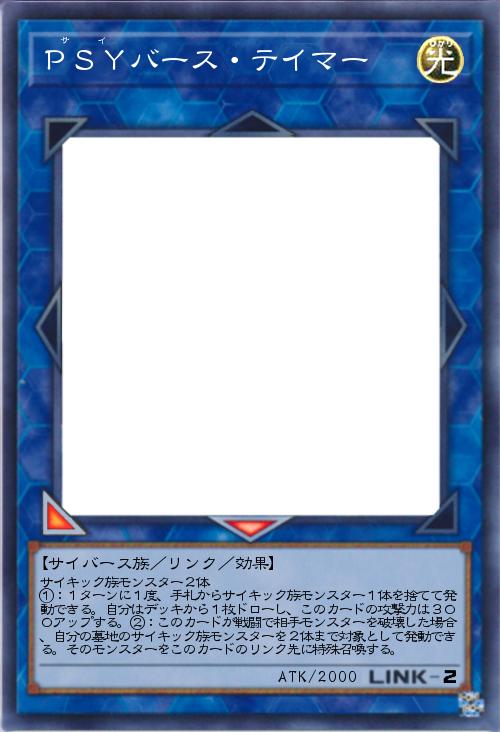 | サイキック族モンスター2体 ①:1ターンに1度、手札からサイキック族モンスター1体を捨てて発動できる。自分はデッキから1枚ドローし、このカードの攻撃力は300アップする。②:このカードが戦闘で相手モンスターを破壊した場合、自分の墓地のサイキック族モンスターを2体まで対象として発動できる。そのモンスターをこのカードのリンク先に特殊召喚する。 | |||