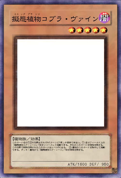| このカード名の①②の効果はそれぞれ1ターンに1度しか使用できない。①:自分フィールド上の「擬態植物コア・シード」1体をリリースして発動できる。手札のこのカードを特殊召喚する。 この効果で特殊召喚されたこのカードはレベル3になる。 ②:墓地のこのカードを除外して発動できる。デッキ・墓地から「擬態植物コア・シード」1体を特殊召喚する。 | |||