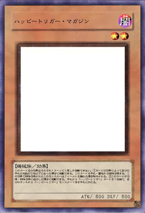 | このカード名の効果はそれぞれ1ターンに1度しか発動できない。①カードの効果によって自分の手札の枚数が2枚以下になった場合に発動できる。このカードを手札・墓地から特殊召喚する。この効果で特殊召喚されたこのモンスターはフィールドを離れた場合除外される。②このカードが召喚・特殊召喚に成功した場合に発動できる。手札から「ハッピートリガー」カードを1枚捨て、自分のデッキから「ハッピートリガー」モンスター1体を手札に加える。 | |||