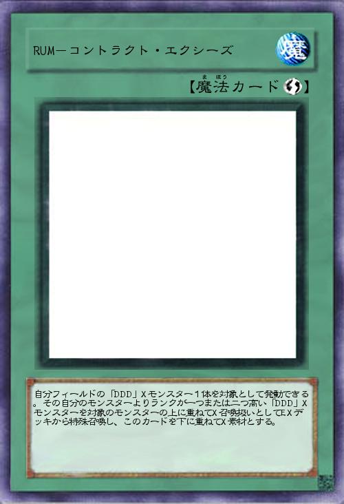 | 自分フィールドの「DDD」Xモンスター1体を対象として発動できる。その自分のモンスターよりランクが一つまたは二つ高い「DDD」Xモンスターを対象のモンスターの上に重ねてX召喚扱いとしてEXデッキから特殊召喚し、このカードを下に重ねてX素材とする。 | |||