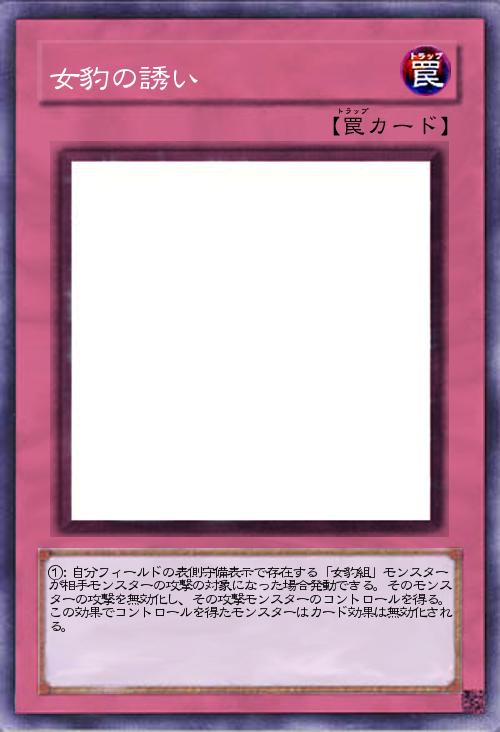 | ①:自分フィールドの表側守備表示で存在する「女豹組」モンスターが相手モンスターの攻撃の対象になった場合発動できる。そのモンスターの攻撃を無効化し、その攻撃モンスターのコントロールを得る。この効果でコントロールを得たモンスターはカード効果は無効化される。 | |||