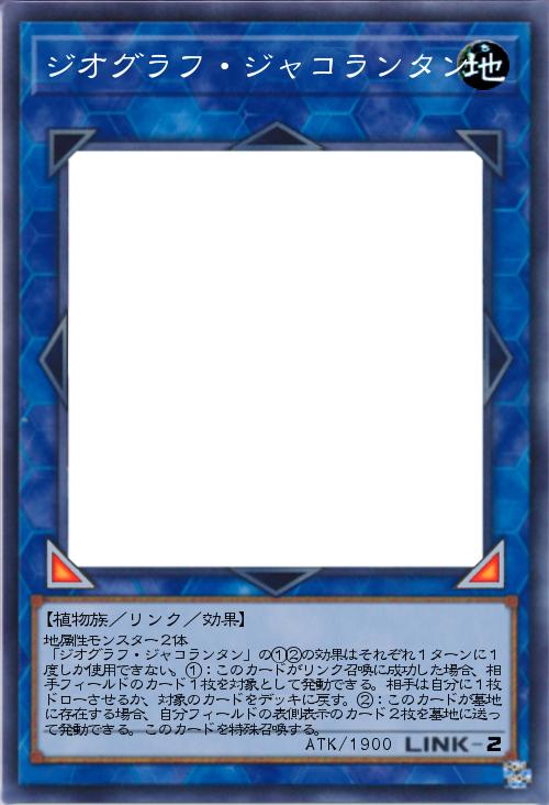 | 地属性モンスター2体 「ジオグラフ・ジャコランタン」の①②の効果はそれぞれ1ターンに1度しか使用できない。①:このカードがリンク召喚に成功した場合、相手フィールドのカード1枚を対象として発動できる。相手は自分に1枚ドローさせるか、対象のカードをデッキに戻す。②:このカードが墓地に存在する場合、自分フィールドの表側表示のカード2枚を墓地に送って発動できる。このカードを特殊召喚する。 | |||