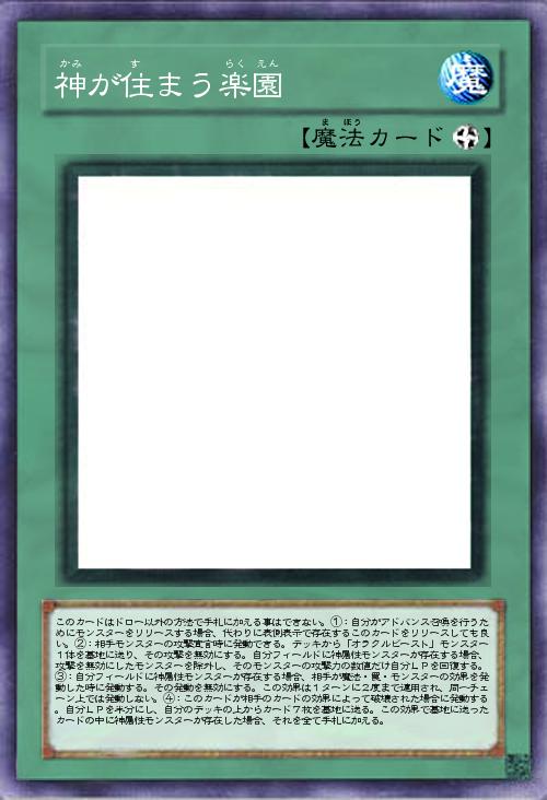 | このカードはドロー以外の方法で手札に加える事はできない。①:自分がアドバンス召喚を行うためにモンスターをリリースする場合、代わりに表側表示で存在するこのカードをリリースしても良い。②:相手モンスターの攻撃宣言時に発動できる。デッキから「オラクルビースト」モンスター1体を墓地に送り、その攻撃を無効にする。自分フィールドに神属性モンスターが存在する場合、攻撃を無効にしたモンスターを除外し、そのモンスターの攻撃力の数値だけ自分LPを回復する。③:自分フィールドに神属性モンスターが存在する場合、相手が魔法・罠・モンスターの効果を発動した時に発動する。その発動を無効にする。この効果は1ターンに2度まで適用され、同一チェーン上では発動しない。④:このカードが相手のカードの効果によって破壊された場合に発動する。自分LPを半分にし、自分のデッキの上からカード7枚を墓地に送る。この効果で墓地に送ったカードの | |||