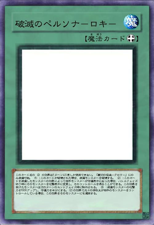 固有効果を2つ有しその2つで完結するようになってます。正しく精神暴走やデスパレードを体現したコントロール奪取と強化の効果に仕上げられたと思います。その代償として他の「ペルソナ」装備カードに備わっている連続攻撃効果がオミットされています。