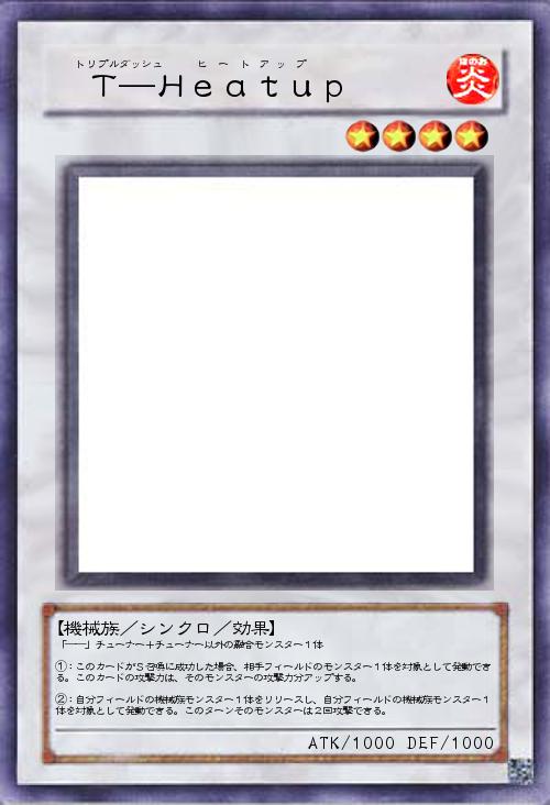 「はい、という訳で2進化目「T―」です。このカードは自己再生した「――」Xモンスターと「――」融合モンスターで作るようデザインされています。ただし融合モンスターに縛りはないので、レベル1融合モンスターとターボでも出来ちゃいます。」(2018-09-20 14:01)
