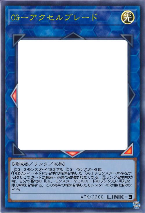 | 「OG」Sモンスター1体を含む「OG」モンスター3体 ①自分フィールドにS召喚で特殊召喚した「OG」Sモンスターが存在する限りこのカードは戦闘・効果で破壊されなくなる。②リンク召喚成功時、自分の墓地の「OG」モンスターをこのカードのリンク先に可能な限り特殊召喚する。この効果で特殊召喚したモンスターの効果は無効になる。 | |||