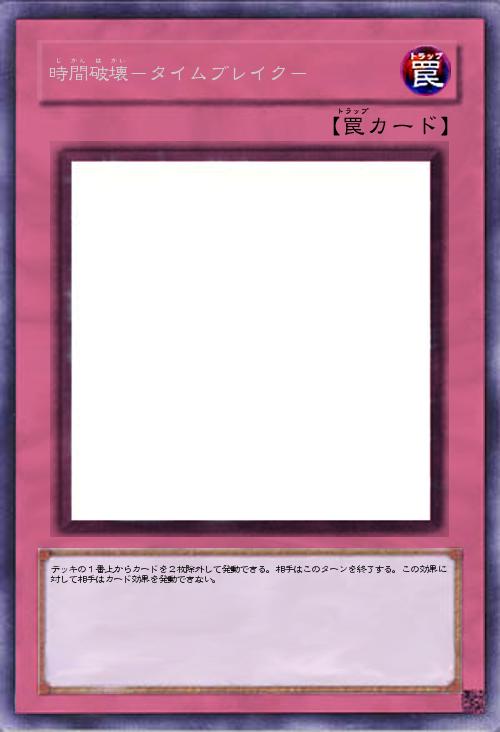 | デッキの1番上からカードを2枚除外して発動できる。相手はこのターンを終了する。この効果に対して相手はカード効果を発動できない。 | |||