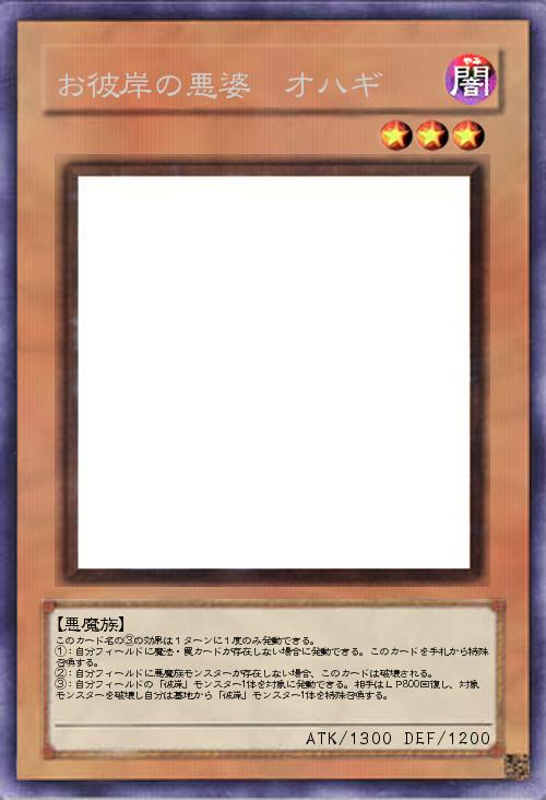 | このカード名の③の効果は1ターンに1度のみ発動できる。 ①:自分フィールドに魔法・罠カードが存在しない場合に発動できる。このカードを手札から特殊召喚する。 ②:自分フィールドに悪魔族モンスターが存在しない場合、このカードは破壊される。 ③:自分フィールドの「彼岸」モンスター1体を対象に発動できる。相手はLP800回復し、対象モンスターを破壊し自分は墓地から「彼岸」モンスター1体を特殊召喚する。 | |||