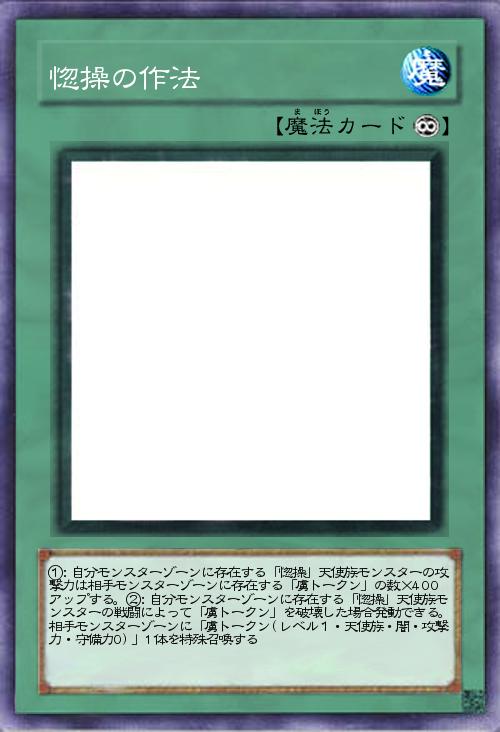 | ①:自分モンスターゾーンに存在する「惚操」天使族モンスターの攻撃力は相手モンスターゾーンに存在する「虜トークン」の数×400アップする。②:自分モンスターゾーンに存在する「惚操」天使族モンスターの戦闘によって「虜トークン」を破壊した場合発動できる。相手モンスターゾーンに「虜トークン(レベル1・天使族・闇・攻撃力・守備力0)」1体を特殊召喚する | |||