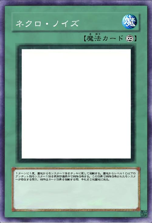 | 1ターンに1度、墓地からモンスター1体をデッキに戻して発動する。墓地からレベル10以下のアンデット族モンスター1体を表側守備表示で特殊召喚する。この効果で特殊召喚されたモンスターが存在する限り、相手はカード効果を発動する際、手札を2枚墓地に送る。 | |||