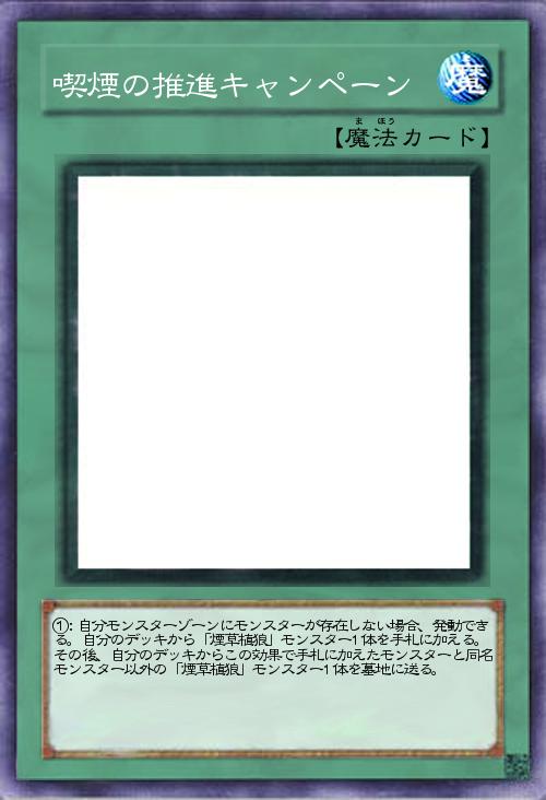 | ①:自分モンスターゾーンにモンスターが存在しない場合、発動できる。自分のデッキから「煙草植狼」モンスター1体を手札に加える。その後、自分のデッキからこの効果で手札に加えたモンスターと同名モンスター以外の「煙草植狼」モンスター1体を墓地に送る。 | |||