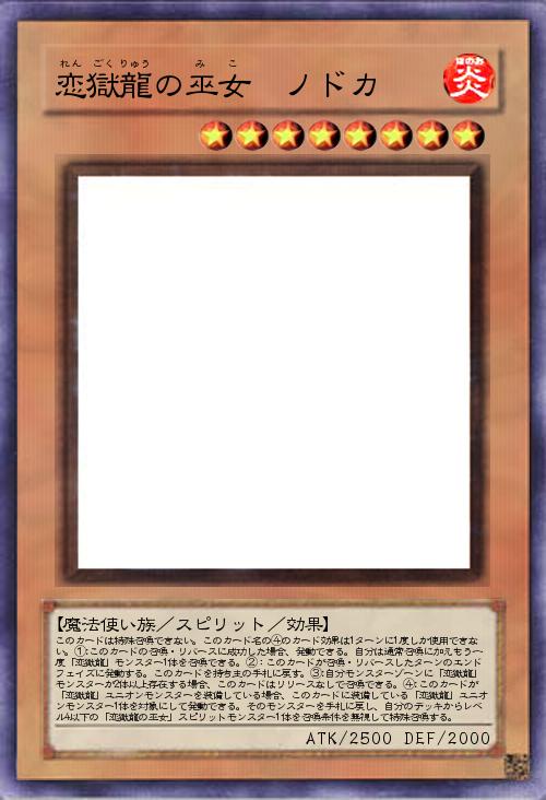 | このカードは特殊召喚できない。このカード名の④のカード効果は1ターンに1度しか使用できない。①:このカードの召喚・リバースに成功した場合、発動できる。自分は通常召喚に加えもう一度「恋獄龍」モンスター1体を召喚できる。②:このカードが召喚・リバースしたターンのエンドフェイズに発動する。このカードを持ち主の手札に戻す。③:自分モンスターゾーンに「恋獄龍」モンスターが2体以上存在する場合、このカードはリリースなしで召喚できる。④:このカードが「恋獄龍」ユニオンモンスターを装備している場合、このカードに装備している「恋獄龍」ユニオンモンスター1体を対象にして発動できる。そのモンスターを手札に戻し、自分のデッキからレベル4以下の「恋獄龍の巫女」スピリットモンスター1体を召喚条件を無視して特殊召喚する。 | |||