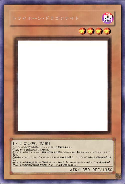 | このカード名の③の効果は1ターンに1度しか発動出来ない。 ①このカードは戦士族としても扱う。 ②このカードはフィールド、墓地に存在する限りこのカードは『トライホーン・ドラゴン』として扱う。 ③相手メインモンスターゾーンにモンスターが存在する場合、このカードは手札から特殊召喚できる。 ④このカードを墓地に送って発動する。デッキから『トライデントホーン・ドラゴン』を特殊召喚する。この効果は③の効果が発動したターンには発動出来ない。 | |||