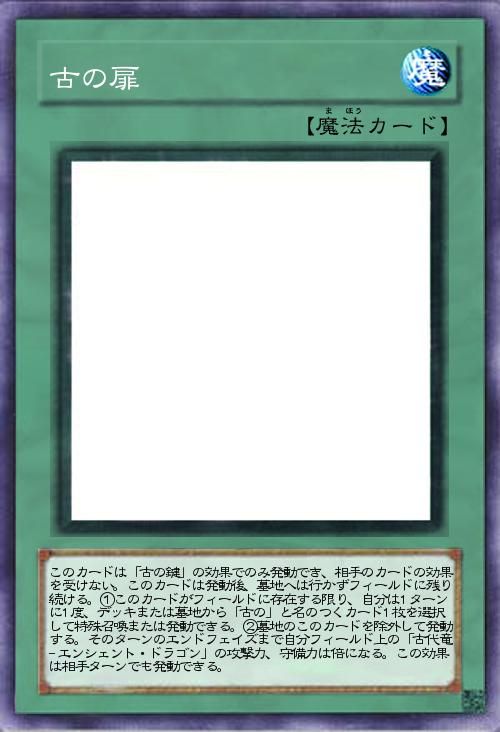 | このカードは「古の鍵」の効果でのみ発動でき、相手のカードの効果を受けない。このカードは発動後、墓地へは行かずフィールドに残り続ける。①このカードがフィールドに存在する限り、自分は1ターンに1度、デッキまたは墓地から「古の」と名のつくカード1枚を選択して特殊召喚または発動できる。②墓地のこのカードを除外して発動する。そのターンのエンドフェイズまで自分フィールド上の「古代竜-エンシェント・ドラゴン」の攻撃力、守備力は倍になる。この効果は相手ターンでも発動できる。 | |||