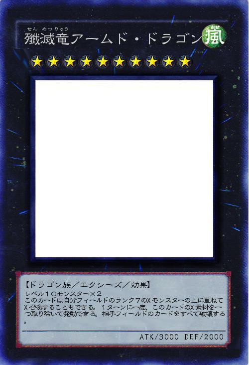 「エクシーズモンスターと化したアームド・ドラゴンLV10。ランク7のエクシーズモンスターの上に重ねて召喚でき、破壊対象も表側表示のモンスターからカード全般にしました。」(2018-10-16 00:55)