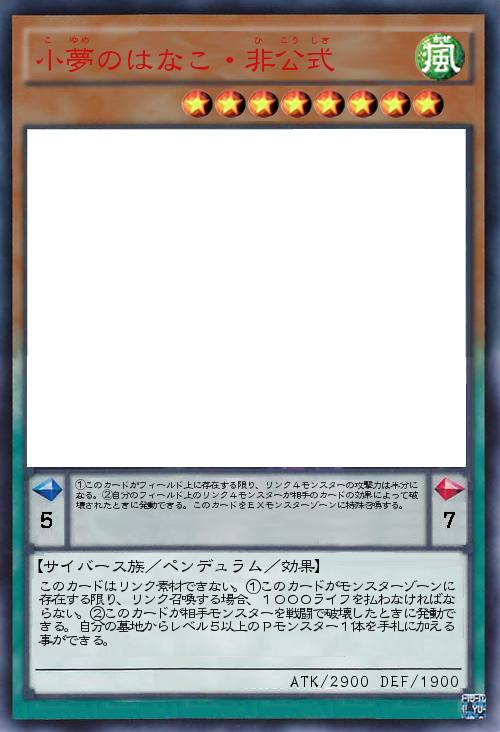 | このカードはリンク素材できない。①このカードがモンスターゾーンに存在する限り、リンク召喚する場合、1000ライフを払わなければならない。②このカードが相手モンスターを戦闘で破壊したときに発動できる。自分の墓地からレベル5以上のPモンスター1体を手札に加える事ができる。 | |||
