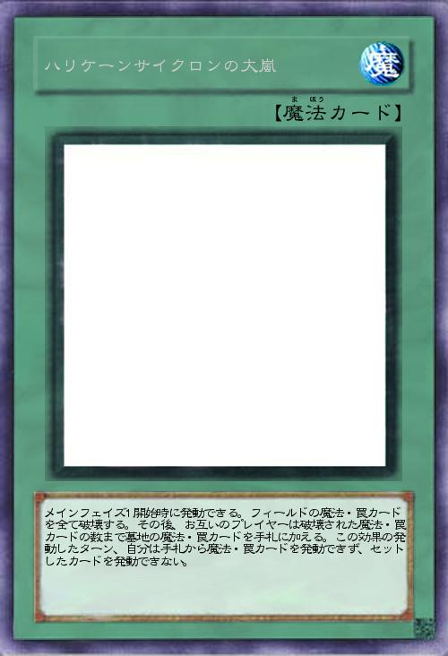 | メインフェイズ1開始時に発動できる。フィールドの魔法・罠カードを全て破壊する。その後、お互いのプレイヤーは破壊された魔法・罠カードの数まで墓地の魔法・罠カードを手札に加える。この効果の発動したターン、自分は手札から魔法・罠カードを発動できず、セットしたカードを発動できない。 | |||