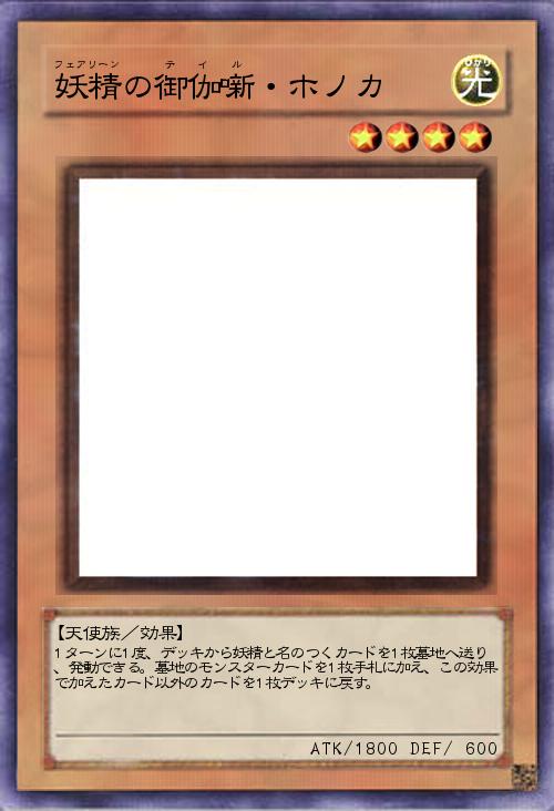 | 1ターンに1度、デッキから妖精と名のつくカードを1枚墓地へ送り、発動できる。墓地のモンスターカードを1枚手札に加え、この効果で加えたカード以外のカードを1枚デッキに戻す。 | |||