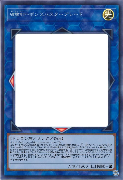 | ドラゴン族チューナー1体以上を含むモンスター2体 このカード名の②③の効果はそれぞれ1ターンに1度しか発動できない。①:自分メインフェイズに自分フィールドの「バスター・ブレイダー」1体を対象として発動できる。自分のフィールド・墓地からこのカードを装備カード扱いで対象のモンスターに装備する。②:このカードが装備されている場合に発動できる。装備されているこのカードを特殊召喚する。③:モンスターゾーンのこのカードをリリースして発動できる。自分の手札・フィールド・墓地からレベルの合計が8になるようにチューナーとチューナー以外のモンスターを1体ずつデッキに戻し、「破戒蛮竜-バスター・ドラゴン」1体をEXデッキから特殊召喚する。 | |||