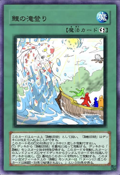| このカードはルール上「融獣目録」として扱い、「融獣目録」はデッキに9枚まで入れることができる。 このカード名の①の効果はマッチ中に1度しか発動できない。 ①:デッキから「融獣目録」を墓地に送って発動する。デッキから「融獣」モンスター2体を特殊召喚する。このカードを発動したターンのエンドフェイズにサイドデッキからランダムでカードを5枚選んでデッキから抜く。②:墓地のこのカードを除外して発動する。このターン自分フィールド上の「融獣」モンスターは「1ターンに1度このカードは戦闘・効果で破壊されない。」という効果を得る。 | |||