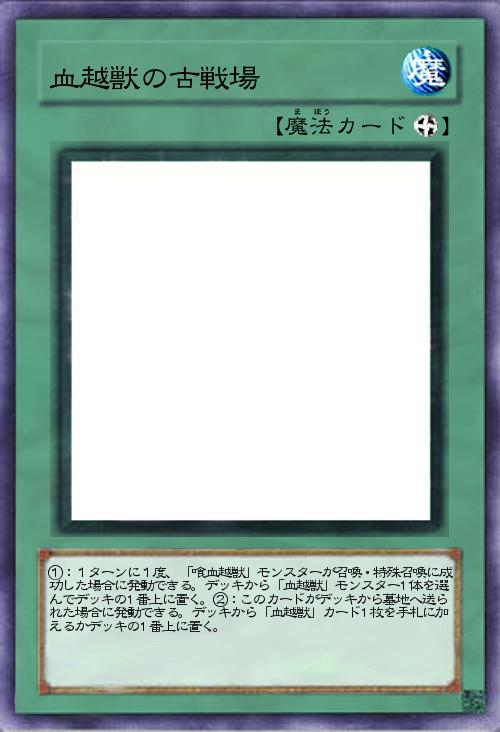| ①:1ターンに1度、「喰血越獣」モンスターが召喚・特殊召喚に成功した場合に発動できる。デッキから「血越獣」モンスター1体を選んでデッキの1番上に置く。②:このカードがデッキから墓地へ送られた場合に発動できる。デッキから「血越獣」カード1枚を手札に加えるかデッキの1番上に置く。 | |||