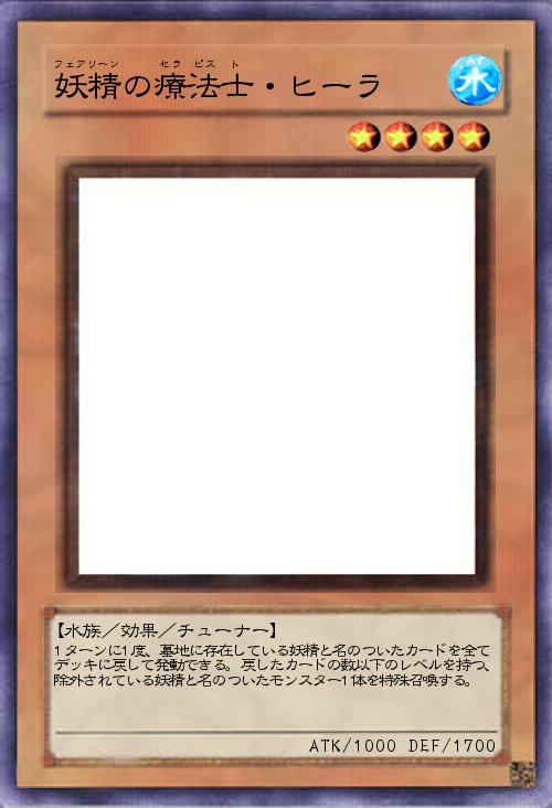 | 1ターンに1度、墓地に存在している妖精と名のついたカードを全てデッキに戻して発動できる。戻したカードの数以下のレベルを持つ、除外されている妖精と名のついたモンスター1体を特殊召喚する。 | |||
