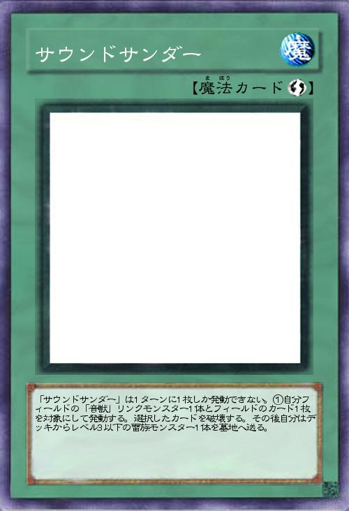 | 「サウンドサンダー」は1ターンに1枚しか発動できない。①自分フィールドの「音獣」リンクモンスター1体とフィールドのカード1枚を対象にして発動する。選択したカードを破壊する。その後自分はデッキからレベル3以下の雷族モンスター1体を墓地へ送る。 | |||