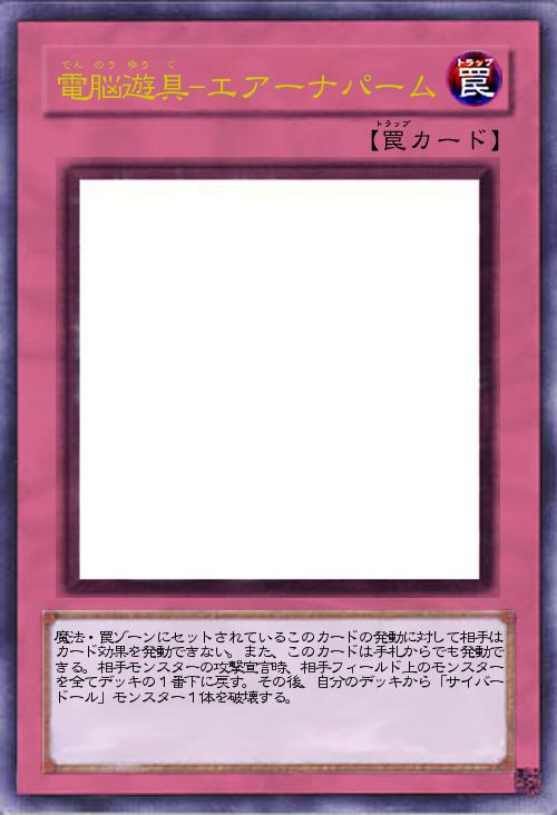 | 魔法・罠ゾーンにセットされているこのカードの発動に対して相手はカード効果を発動できない。また、このカードは手札からでも発動できる。相手モンスターの攻撃宣言時、相手フィールド上のモンスターを全てデッキの1番下に戻す。その後、自分のデッキから「サイバードール」モンスター1体を破壊する。 | |||
