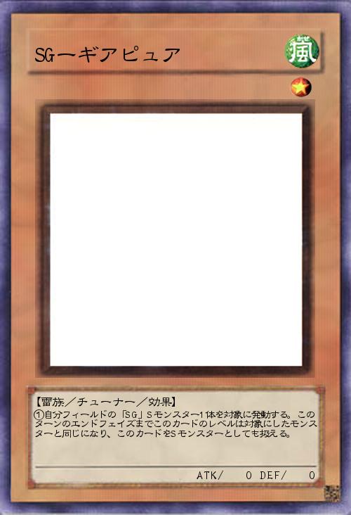 | ①自分フィールドの「SG」Sモンスター1体を対象に発動する。このターンのエンドフェイズまでこのカードのレベルは対象にしたモンスターと同じになり、このカードをSモンスターとしても扱える。 | |||