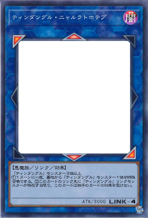 | 「ティンダングル」モンスター3体以上 ①1ターンに一度、墓地から「ティンダングル」モンスター1体を特殊召喚できる。②このカードのリンク先に「ティンダングル」リンクモンスターが存在する限り、このカードは相手のカードの効果を受けない。 | |||