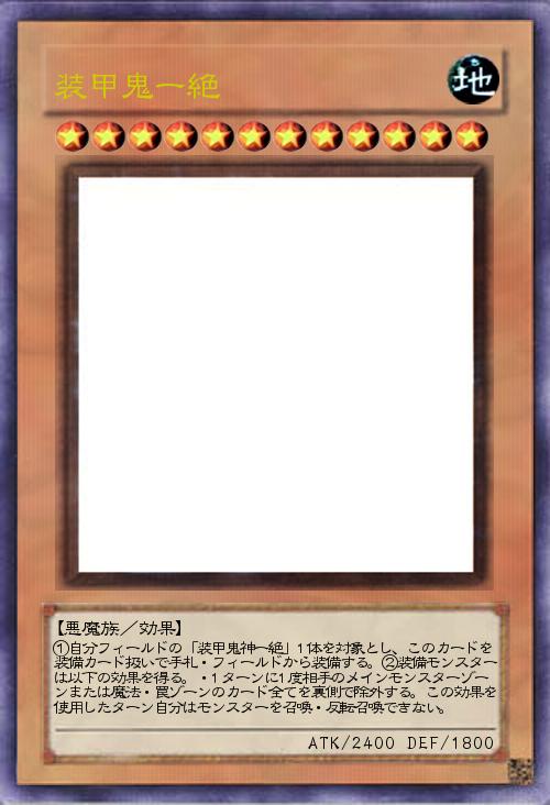 | ①自分フィールドの「装甲鬼神ー絶」1体を対象とし、このカードを装備カード扱いで手札・フィールドから装備する。②装備モンスターは以下の効果を得る。・1ターンに1度相手のメインモンスターゾーンまたは魔法・罠ゾーンのカード全てを裏側で除外する。この効果を使用したターン自分はモンスターを召喚・反転召喚できない。 | |||