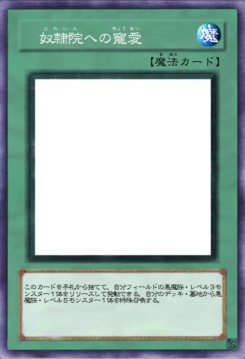 | このカードを手札から捨てて、自分フィールドの悪魔族・レベル3モンスター1体をリリースして発動できる。自分のデッキ・墓地から悪魔族・レベル5モンスター1体を特殊召喚する。 | |||