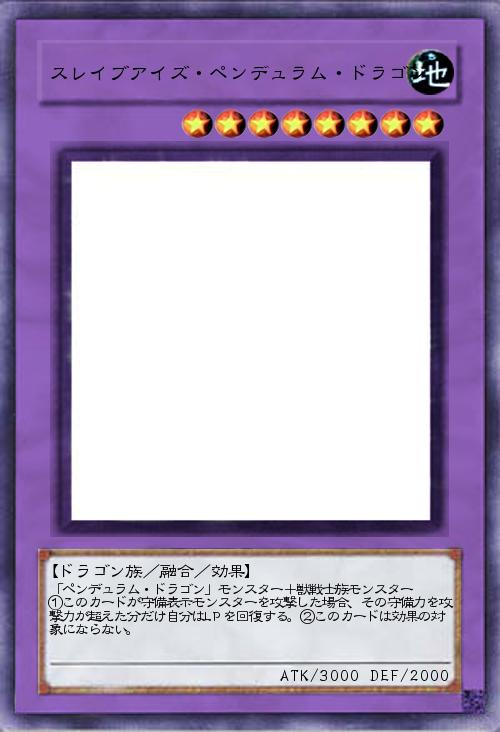 | 「ペンデュラム・ドラゴン」モンスター+獣戦士族モンスター ①このカードが守備表示モンスターを攻撃した場合、その守備力を攻撃力が超えた分だけ自分はLPを回復する。②このカードは効果の対象にならない。 | |||