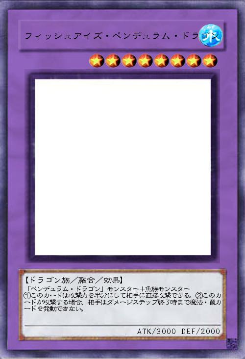 | 「ペンデュラム・ドラゴン」モンスター+魚族モンスター ①このカードは攻撃力を半分にして相手に直接攻撃できる。②このカードが攻撃する場合、相手はダメージステップ終了時まで魔法・罠カードを発動できない。 | |||