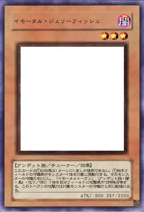 | このカードの①の効果は1ターンに1度しか使用できない。①相手フィールドの守備表示モンスター1体を対象に発動できる。そのモンスターの守備力を0にし、「イモータルトークン」(アンデット族・闇・星4・攻?/守0)1体を自分フィールドに攻撃表示で特殊召喚する。このトークンの攻撃力は対象モンスターの守備力と同じ数値になる。 | |||