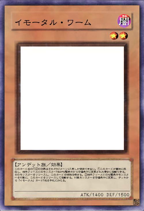 | このカード名の①②の効果はそれぞれ1ターンに1度しか使用できない。①このカードが墓地に存在し、相手フィールドのモンスター1体が攻撃表示から守備表示に変更された場合に発動できる。そのモンスターをリリースし、このカードを特殊召喚する。②相手フィールドの攻撃表示モンスターを対象に、このカードをリリースして発動する。対象モンスターを守備表示に変更し、デッキから「イモータル」カード1枚を手札に加える。 | |||