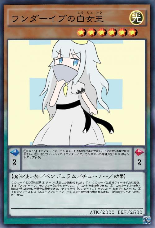 「赤の女王に続いて白の女王も画像を切りながら追加。基本的なところは赤女王と同じですが、場に出たときのサーチ先がモンスターになっていて、息切れを防ぎます。また、ニューワンダーイブ専用ライブラリアン効果を持っていて、手札の補充を補ってくれます。」(2018-11-01 20:33)