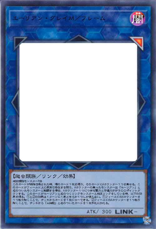 | 爬虫類族モンスター1体 このカードが特殊召喚された時、場のカード1枚を選ぶ、そのカードにAカウンター1つを乗せる。このカードがフィールド上に表側で存在する限り、Aカウンターの乗ったモンスターは「エーリアン」と名のついたモンスターと戦闘する場合、Aカウンター1つにつき攻撃力と守備力がが300ポイントダウンする。このカードがエーリアンと名のつくリンクモンスターと相互リンクをしている時、以下の効果を得る。①と②の効果は1ターンに1度どちらか1つしか使えない。①フィールドのAカウンターを1つ取り除くことで、デッキからカードを1枚ドローできる。②フィールドのAカウンターを1つ取り除くことで、デッキから「A細胞」と名のついたカードを1枚手札に加える。 | |||