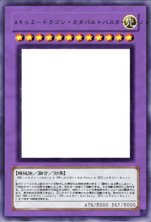 「ABC-ドラゴン・バスター、VW-タイガー・カタパルト、XYZ-ドラゴン・キャノンの融合モンスターを作りました。ドラゴン・バスターキャノンと違い、こちらは無効にして除外する誘発即時効果を持ち、最終突撃命令を内蔵した重たいモンスター。」(2018-11-04 14:36)