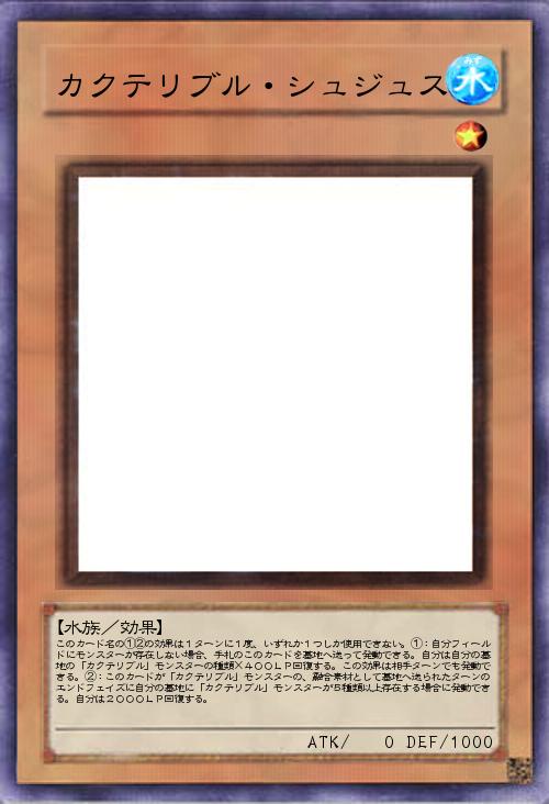 | このカード名の①②の効果は1ターンに1度、いずれか1つしか使用できない。①:自分フィールドにモンスターが存在しない場合、手札のこのカードを墓地へ送って発動できる。自分は自分の墓地の「カクテリブル」モンスターの種類×400LP回復する。この効果は相手ターンでも発動できる。②:このカードが「カクテリブル」モンスターの、融合素材として墓地へ送られたターンのエンドフェイズに自分の墓地に「カクテリブル」モンスターが5種類以上存在する場合に発動できる。自分は2000LP回復する。 | |||