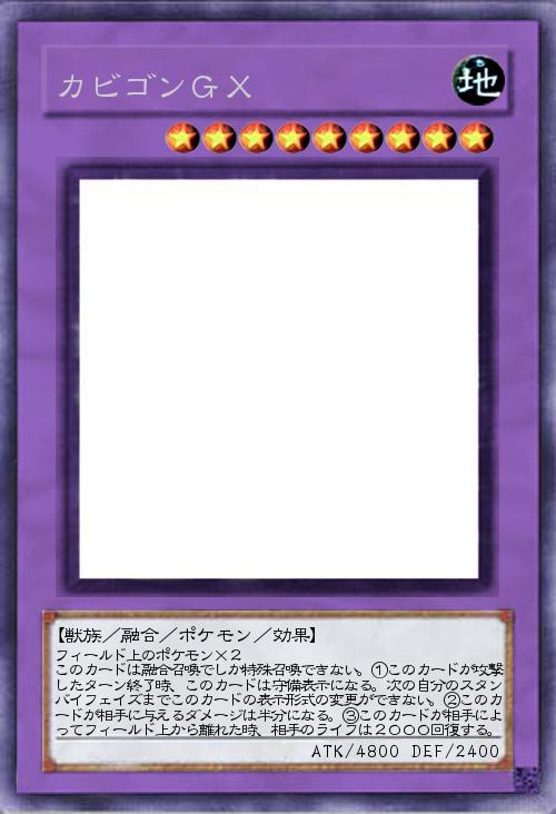 | フィールド上のポケモン×2 このカードは融合召喚でしか特殊召喚できない。①このカードが攻撃したターン終了時、このカードは守備表示になる。次の自分のスタンバイフェイズまでこのカードの表示形式の変更ができない。②このカードが相手に与えるダメージは半分になる。③このカードが相手によってフィールド上から離れた時、相手のライフは2000回復する。 | |||
