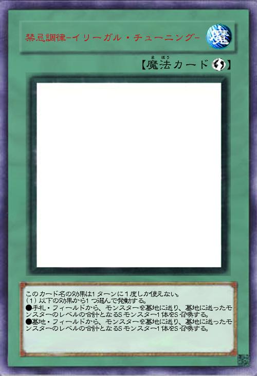 | このカード名の効果は1ターンに1度しか使えない。 (1)以下の効果から1つ選んで発動する。 ●手札・フィールドから、モンスターを墓地に送り、墓地に送ったモンスターのレベルの合計となるSモンスター1体をS召喚する。 ●墓地・フィールドから、モンスターを墓地に送り、墓地に送ったモンスターのレベルの合計となるSモンスター1体をS召喚する。 | |||