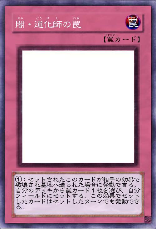 | ①:セットされたこのカードが相手の効果で破壊され墓地へ送られた場合に発動できる。自分のデッキから罠カード1枚を選び、自分フィールドにセットする。この効果でセットしたカードはセットしたターンでも発動できる。 | |||